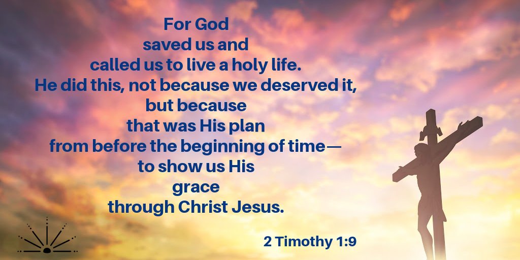 For God saved us and called us to live a holy life. He did this, not because we deserved it, but because that was his plan from before the beginning of time—to show us his grace through Christ Jesus. ~ 2 Timothy 1:9